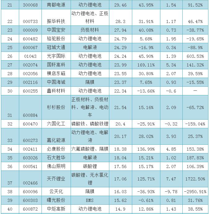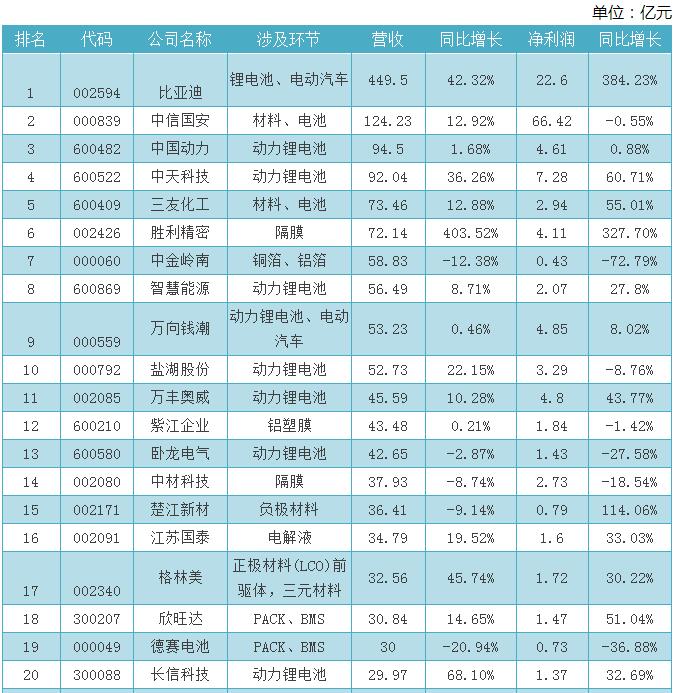鋰電池上市公司2016上半年營業(yè)收入排名