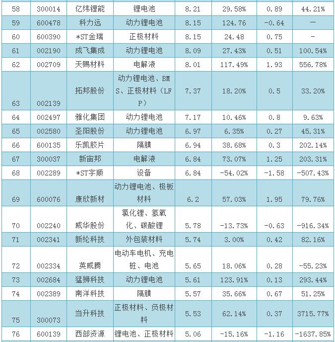 鋰電池營業(yè)收入排名前10的鋰電池上市公司分別是比亞迪、中信國安、中國動力、中天科技、三友化工、勝利精密、中金嶺南、智慧能源、萬向錢潮、鹽湖股份。