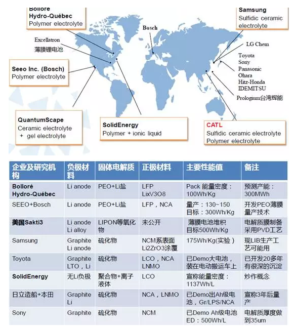全球全固態(tài)電池企業(yè)研發(fā)的分布圖