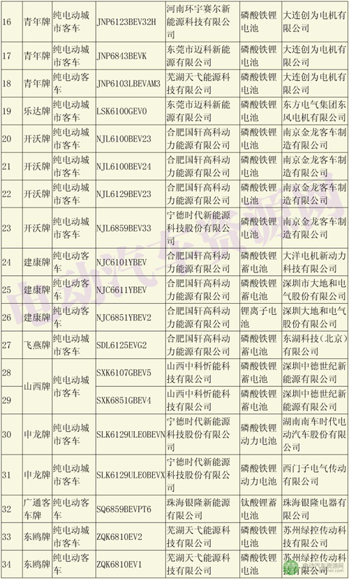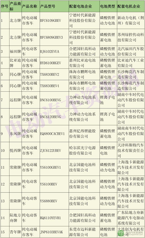 以下是290批新車公示中純電動客車(不含純電動客車底盤)配套的電池電機企業(yè):