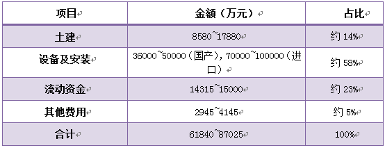 年產(chǎn)10億瓦時(shí)動(dòng)力鋰離子電池的投資構(gòu)成
