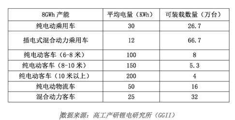 若按意見(jiàn)稿要求,單家企業(yè)產(chǎn)能規(guī)劃將與當(dāng)前國(guó)內(nèi)新能源汽車需求嚴(yán)重不符合。其中,8GWh動(dòng)力鋰電池將滿足以下不同車型的裝機(jī)量。