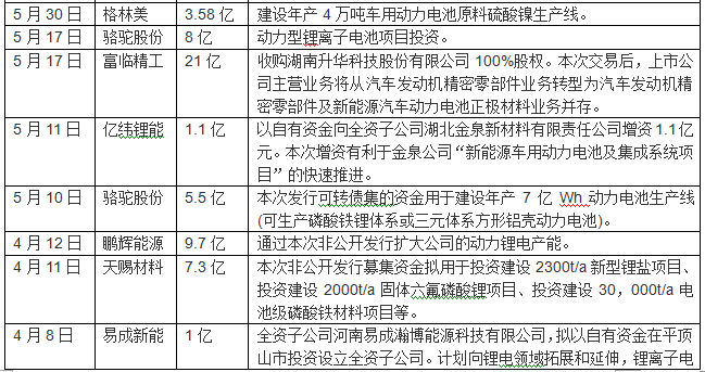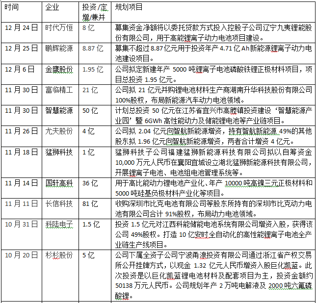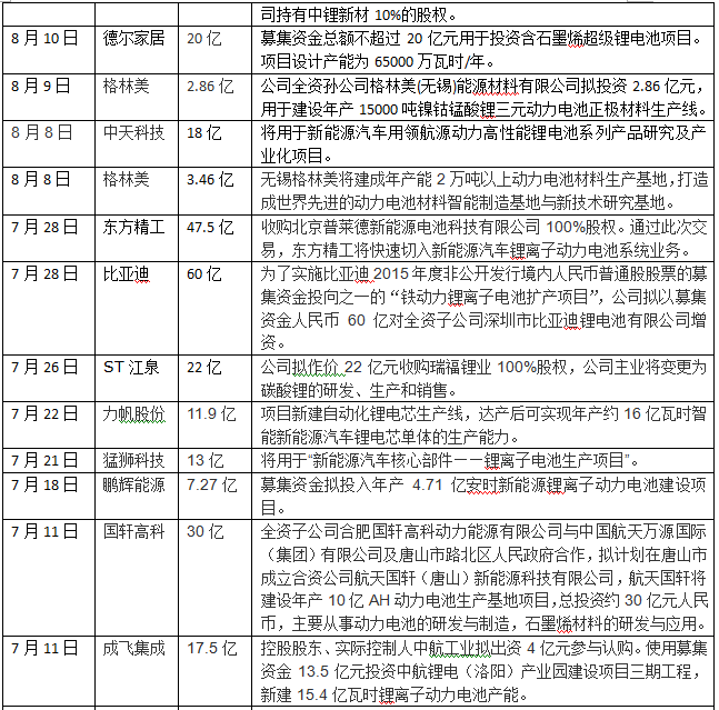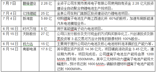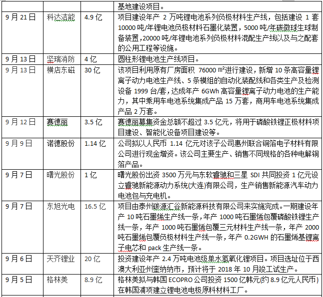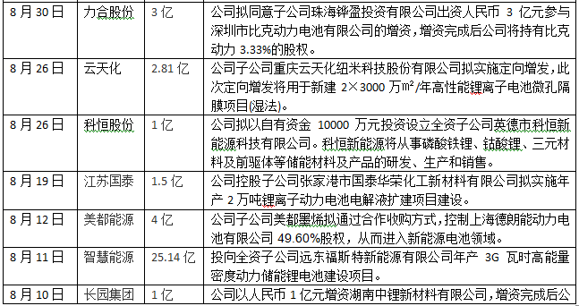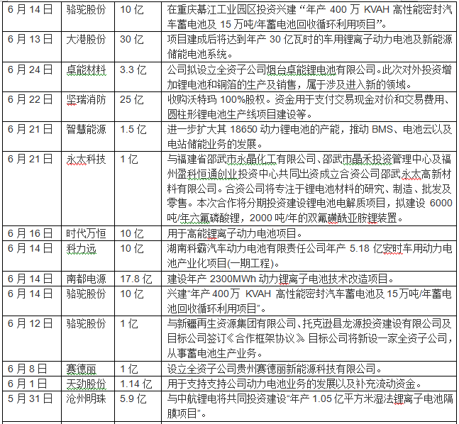 其中,比亞迪、智慧能源、大港股份、國軒高科、東方精工、橫店東磁一次性投向動力電池領域超30億元,智慧能源、富臨精工、長信科技、國軒高科、西部資源、尤夫股份、堅瑞消防、東旭光電、天齊鋰業(yè)、德爾家居、東方精工、ST江泉、億緯鋰能、天際股份、科力遠、南都電源、堅瑞消防、駱駝股份、猛獅科技等企業(yè)一次性投入資金超十億元。