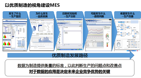 因此實(shí)現(xiàn)優(yōu)質(zhì)制造的基礎(chǔ)是實(shí)施MES系統(tǒng)。通過(guò)實(shí)施MES系統(tǒng)來(lái)解決數(shù)據(jù)如何采集和標(biāo)準(zhǔn)化、數(shù)據(jù)如何篩選,甄別和統(tǒng)計(jì),形成有效的信息、以及如何對(duì)于信息進(jìn)行分析和判斷,并以此產(chǎn)生價(jià)值。
