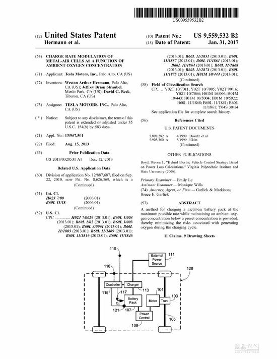 據(jù)報(bào)道,特斯拉首次于2010年申請(qǐng)金屬空氣電池方面的專利,在2013年,當(dāng)特斯拉開始獲得該技術(shù)的部分專利時(shí),特斯拉進(jìn)行了充電技術(shù)的部分修正。而在兩周前,特斯拉最終獲得了金屬空氣電池充電技術(shù)的專利。