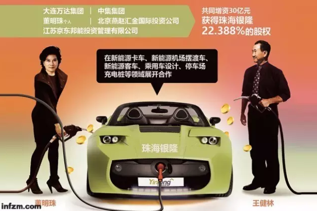 但董明珠并沒有放棄。2016年12月,在最新一輪增資中,董明珠以個人身份聯(lián)手王健林執(zhí)掌的大連萬達集團、劉強東麾下的宿遷涵邦投資管理有限公司、中集集團以及神秘股東北京燕趙匯金國際投資有限責任公司,共同為珠海銀隆增資30億元。