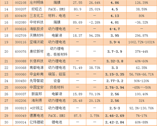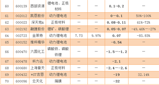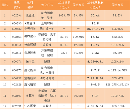 在70家已發(fā)布業(yè)績預(yù)告的企業(yè)中,凈利潤排名前10的鋰電上市公司分別是比亞迪、*ST金瑞、中天科技、天齊鋰業(yè)、佛山照明、必康股份、保千里、嘉化能源、鹽湖股份、勝利精密。