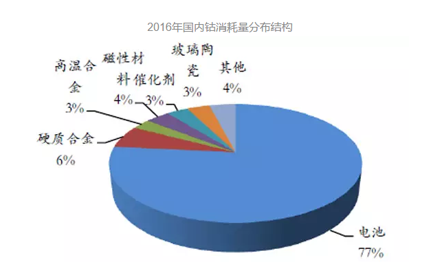 中國的鈷資源極為匱乏,目前儲量僅為8萬噸,占世界總儲量的1.1%。2016年我國的鈷產(chǎn)量是4.6萬噸,其中電池材料消費用鈷約3.67萬噸,占比約78%,比例非常之高。