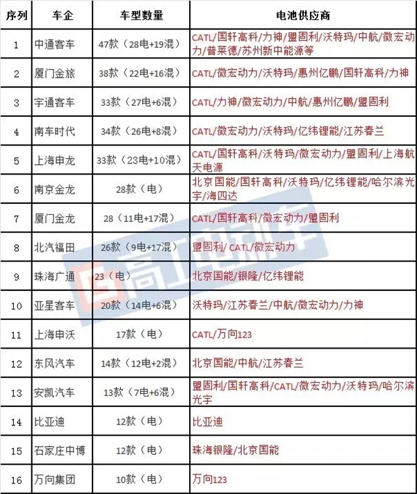 另外還有16款鈦酸鋰電池純電動客車,其中珠海廣通汽車8款,石家莊中博汽車7款,成都客車1款。
