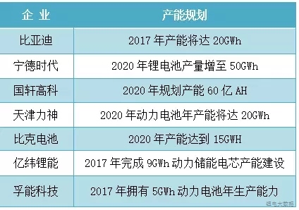 部分動力電池企業(yè)未來產(chǎn)能規(guī)劃一覽