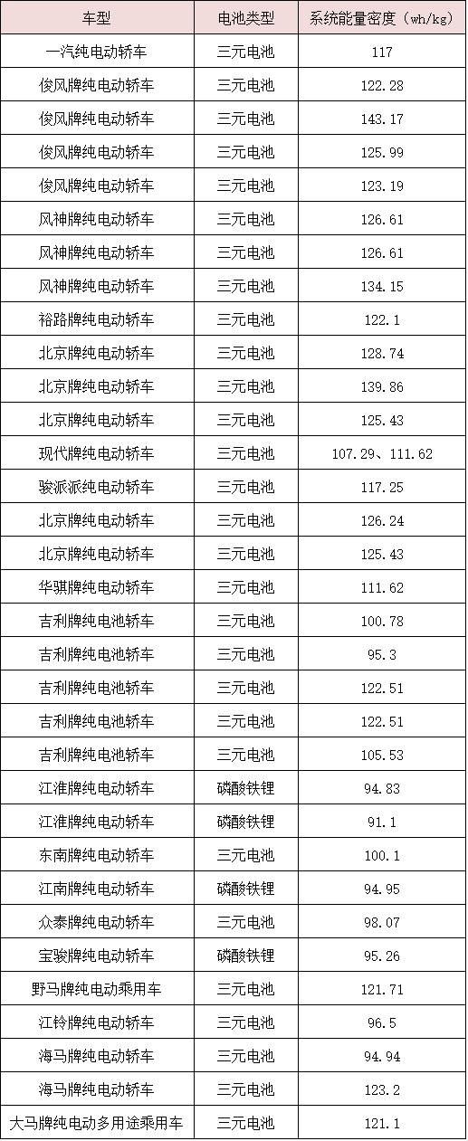 2017第三批推薦目錄純電動乘用車電池系統(tǒng)能量密度對比