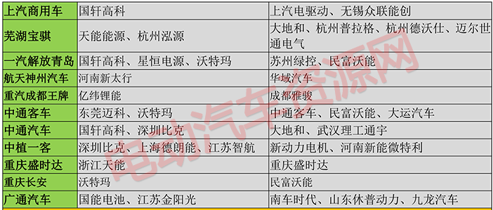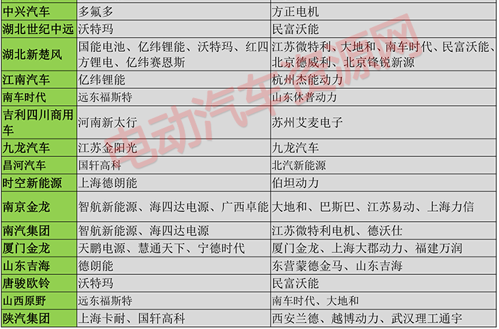 (3)車企與配套電池電機分布情況