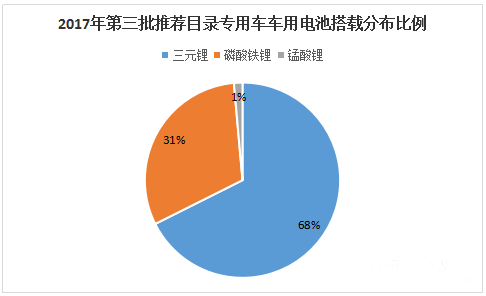 在142款電動專用車中,有96款車型搭載三元鋰電池,占比68%;44款車型搭載磷酸鐵鋰電池,占比31%;只有兩款車型搭載錳酸鋰電池。