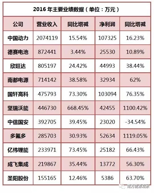 綜合來看,2016年鋰電池上市企業(yè)在營業(yè)收入和凈利潤上普遍實(shí)現(xiàn)了兩位數(shù)的增長。