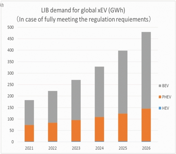 為了滿足各國的環(huán)境法規(guī)相關(guān)要求,2021年的電動(dòng)車需要達(dá)到900百萬輛,2026年需要達(dá)到1千6百萬輛,轉(zhuǎn)化為電池的需求量大約為2021年需要180GWh(大約需要另外4個(gè)類似的特斯拉超級(jí)電池工廠,產(chǎn)能35GWh),2026年需要450-500GWh(大約需要另外12-13個(gè)特斯拉超級(jí)電池工廠)(圖2)。