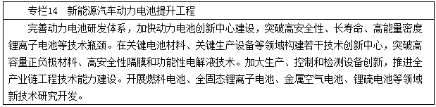 2016年12月,國務院印發(fā)《“十三五”國家戰(zhàn)略性新興產(chǎn)業(yè)發(fā)展規(guī)劃》。規(guī)劃中關于動力電池領域的主要內(nèi)容有: