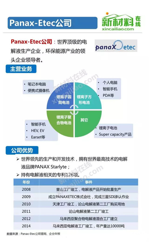 中國(guó)儲(chǔ)能網(wǎng)訊:電解液的總成本占鋰離子電池的成本的比例約為5%-15%。我們知道,常規(guī)的鋰離子電池采用的都是非水有機(jī)溶劑,當(dāng)電池由于內(nèi)部短路而發(fā)熱時(shí),電解液受熱分解產(chǎn)生氣體,輕則電池膨脹,重則導(dǎo)致電池爆炸。今天小編就為你盤點(diǎn)一下全球鋰離子電池電解液知名企業(yè)。