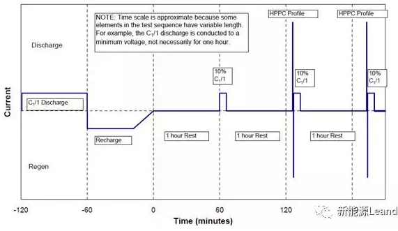 一個(gè)HPPC測(cè)試中小的cycle基本是由這60s構(gòu)成的,10s脈沖放,40s休息,10s脈沖充,而整個(gè)的流程如下: