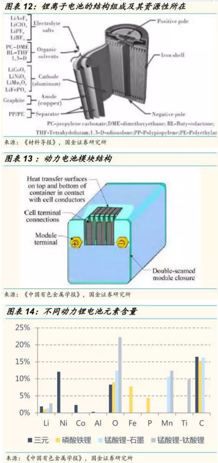 這些因?yàn)榘l(fā)展新能源汽車產(chǎn)業(yè)而產(chǎn)生的電池報(bào)廢量如果不得到妥善的處置,將會對環(huán)境造成較大的污染;此外,廢棄的鋰離子電池具有顯著的資源性,下文我們將分析鋰離子電池回收的技術(shù)可行性和成本經(jīng)濟(jì)性。