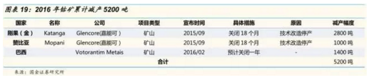 鈷礦減產(chǎn)項(xiàng)目包括:嘉能可的 Katanga 和 Mopani 項(xiàng)目、巴西的Votorantim Metais 礦山,預(yù)計(jì)減產(chǎn)金屬量 5200 噸。未來隨著銅鎳價(jià)的繼續(xù)低迷,不排除其它大型礦企也會加入減產(chǎn)的陣營。