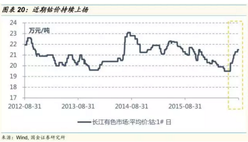 由于 2016 年上半年動力鋰電池市場的快速發(fā)展所帶動的對于鈷的需求提振以及各大礦山減產(chǎn)的預(yù)期,鈷價(jià)在 2016 年年中出現(xiàn)了拐點(diǎn) ,預(yù)計(jì)未來兩年內(nèi)仍將維持供給緊平衡的態(tài)勢 。從全球市場來看,鈷的需求 42%集中在鋰電池領(lǐng)域,其次是高溫合金(16%)和硬質(zhì)合金(10%);從中國市場來看,電池材料占比高達(dá) 69%。隨著新能源車下游需求逐步明確,國內(nèi)動力電池廠商2016 年-2017 年紛紛擴(kuò)大產(chǎn)能,對于鈷的需求將進(jìn)一步提升。因此從廢舊電池中回收再利用鈷也越來越具有經(jīng)濟(jì)性。