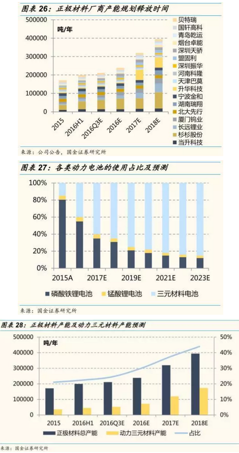 從三元材料的產(chǎn)能來看,預(yù)計(jì)2016 年動力三元材料產(chǎn)能將超過 7.1 萬噸/年,2016~2018 年的年復(fù)合增長率將達(dá)到 56% 。