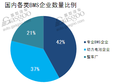 在我國的各類BMS企業(yè)數(shù)量比例中,大致分為專業(yè)BMS企業(yè)、動力電池企業(yè)和整車廠三類。