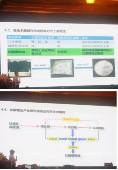 中科院成都有機化學(xué)研究所的范未峰教授指出,鋰資源的儲量是鋰電池可持續(xù)發(fā)展的核心問題。鋰電池正極材料中儲量最少的是鈷,其次是鎳、錳;負極方面主要是石墨和TiO2。所以,當一種元素的儲量非常豐富的時候,才能提到后續(xù)發(fā)展。在回收方面,三元電池、磷酸鐵鋰電池正極的回收主要是鋰、鈷、鎳;負極主要是銅,這些都是使用濕法冶金提取的方法。但對鈦酸鋰電池而言,鈦酸鋰電池的極片經(jīng)過加熱處理還可以變成鈦酸鋰。這樣處理相當于一次塑料變?yōu)槎嗡芰希佀徜嚮厥盏男矢摺?