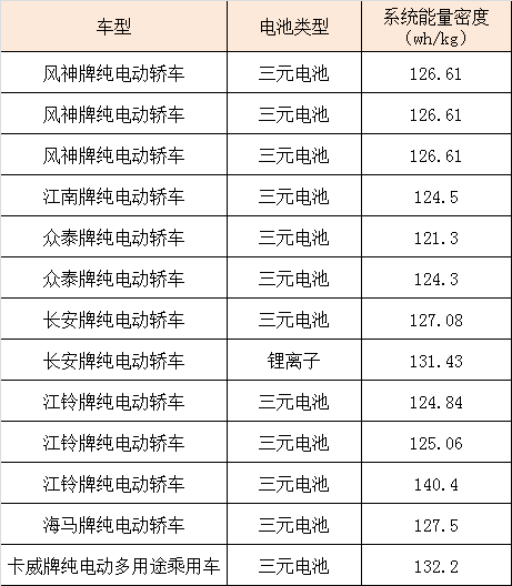 從系統(tǒng)能量密度來看,電池系統(tǒng)能量密度超過120wh/kg的純電動(dòng)乘用車車型有13款,可獲得1.1倍補(bǔ)貼,在純電動(dòng)乘用車型中占比59%。