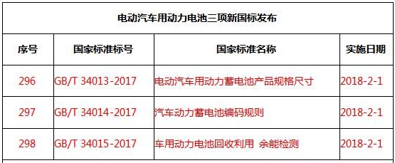 本次GB/T 34013-2017《電動汽車用動力蓄電池產(chǎn)品規(guī)格尺寸》、GB/T 34014-2017《汽車動力蓄電池編碼規(guī)則》、GB/T 34015-2017《車用動力電池回收利用 余能檢測》三項(xiàng)國家標(biāo)準(zhǔn)發(fā)布,使動力電池產(chǎn)品規(guī)格尺寸、編碼規(guī)則和回收利用余能檢測有標(biāo)準(zhǔn)可依,對動力電池行業(yè)規(guī)范發(fā)展具有重要意義,對動力電池企業(yè)乃至新能源汽車產(chǎn)業(yè)都將產(chǎn)生影響。