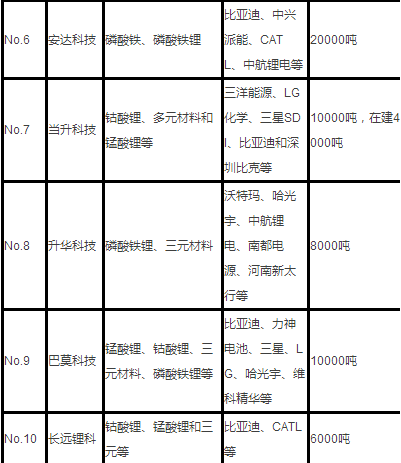 國(guó)內(nèi)正極材料競(jìng)爭(zhēng)力前10強(qiáng)供應(yīng)商及其產(chǎn)品結(jié)構(gòu)、產(chǎn)能情況