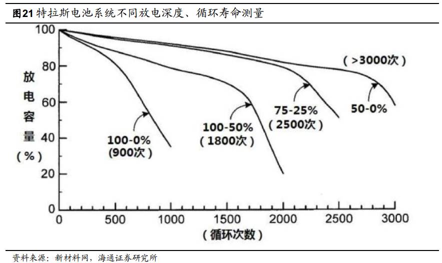 對(duì)于鋰電池來(lái)講,深放電機(jī)會(huì)越小壽命越長(zhǎng),反之,頻繁地深放電(將電池電量用到20%以下)將導(dǎo)致電池壽命降低。特斯拉電池在其特有的工藝下,在50-0%循環(huán)模式(使用電池不超過(guò)50%的電量),電池總壽命延長(zhǎng)一倍。而在深度循環(huán)模式下,900個(gè)循環(huán)后,容量衰減至50%。所以從保護(hù)電池壽命的角度來(lái)講,可以盡量將每次行程控制在80%最大續(xù)航之內(nèi),避免用電超80%后再充電,但可定期深放電以激活電池。