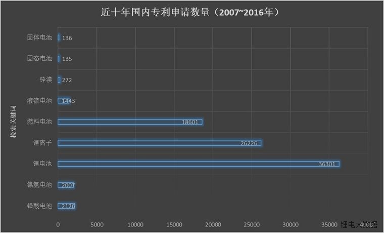 總而言之,固態(tài)電池的發(fā)展還處于早期階段,上面的數(shù)據(jù)和特性都帶有實(shí)驗(yàn)性質(zhì),距離商業(yè)化還有一段路要走。下面這張圖是固態(tài)電池和鋰電池等近十年來(lái)國(guó)內(nèi)專利申請(qǐng)量對(duì)比: