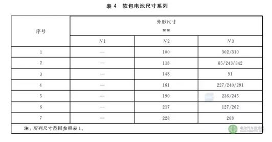 從表4可以看出,軟包電池標準中,對厚度沒有要求,寬度有7種尺寸,而高度有更加多的選擇。