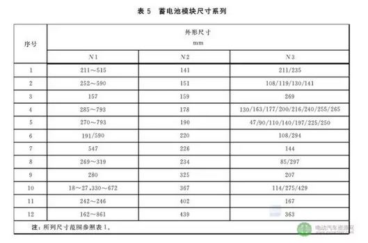 在電池模塊規(guī)格尺寸中,只對電池模塊的寬度進行限定,共有12種尺寸。在厚度和高度上有更多的選擇空間。