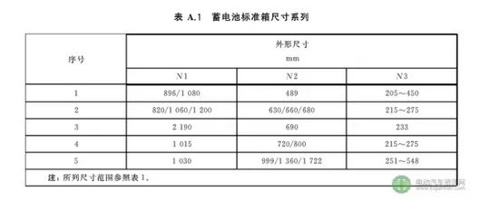 GB/T 34013-2017標準明確規(guī)定了電動汽車動力電池單體、模塊和標準箱規(guī)格尺寸,適用于電動汽車上的鋰離子電池、金屬鉛化物鎳蓄電池和其他類型蓄電池。