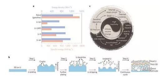 鋰離子電池對(duì)人們的日常生活產(chǎn)生了深遠(yuǎn)的影響,商業(yè)化的使用碳負(fù)極的鋰離子電池現(xiàn)已基本接近其理論容量,難以滿(mǎn)足便攜電子設(shè)備、電動(dòng)汽車(chē)和大規(guī)模能量存儲(chǔ)等方面越來(lái)越高的應(yīng)用要求。在可用作鋰電池負(fù)極的材料中,金屬鋰具有最大的理論能量密度(3860 mAh g?1或2061 mAh cm?3)和最低的電化學(xué)勢(shì)(相對(duì)于標(biāo)準(zhǔn)氫電極為-3.04 V),是下一代高能鋰電池如Li-S和Li-空氣電池的負(fù)極材料的最佳選擇。然而,金屬鋰負(fù)極在實(shí)際應(yīng)用中易生成枝晶,解決安全性和穩(wěn)定性的問(wèn)題是當(dāng)前金屬鋰負(fù)極研究的重點(diǎn)。斯坦福大學(xué)材料科學(xué)與工程系的崔屹教授(通訊作者)等人在Nature Nanotechnology發(fā)表了題為“Reviving the lithium metal anode for high-energy batteries”的綜述,首次系統(tǒng)總結(jié)了當(dāng)前對(duì)于金屬鋰負(fù)極的理解,強(qiáng)調(diào)了近期在材料設(shè)計(jì)和先進(jìn)表征方法上的重大進(jìn)展,并且為金屬鋰負(fù)極未來(lái)的研究方向提供了參考。