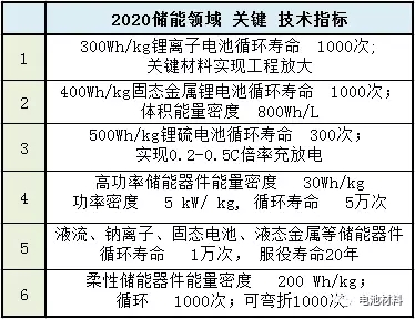 李泓研究員在儲能技術(shù)預(yù)測與規(guī)劃中稱,到2020年,將完全掌握300Wh/kg的儲能器件中的關(guān)鍵材料技術(shù),基本掌握多種新型高能量密度儲能器件的材料體系的選擇與性能的實(shí)現(xiàn),具體關(guān)鍵指標(biāo)如下: