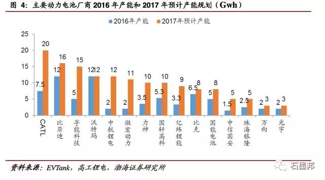 上述兩個(gè)政策明確的指出了產(chǎn)業(yè)發(fā)展的方向,擴(kuò)大優(yōu)質(zhì)產(chǎn)能規(guī)模,形成規(guī)模效應(yīng),進(jìn)一步降低生產(chǎn)成本。各大廠商早在 15 年就開始紛紛進(jìn)行產(chǎn)能擴(kuò)張,2016 年國(guó)內(nèi)動(dòng)力電池有效產(chǎn)能約為 60Gwh,若 2017 年各企業(yè)的產(chǎn)能規(guī)劃能夠達(dá)產(chǎn),我們認(rèn)為 17 年的有效產(chǎn)能在 100Gwh 以上。而根據(jù) 2017 年 70 萬輛新能源汽車銷量的預(yù)測(cè),我們預(yù)計(jì) 2017 年的需求為 36.58Gwh,行業(yè) 17 年面臨產(chǎn)能過剩、競(jìng)爭(zhēng)激烈的局面。