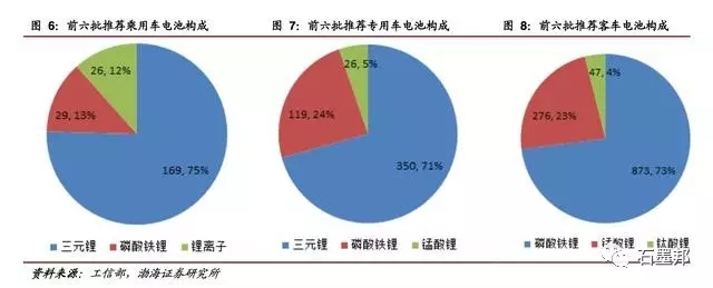 從 17 年前 6 批新能源汽車推薦目錄車型來看,三元電池在乘用車和專用車的配套比例逐步上升,前六批乘用車的三元電池占比為 75%,專用車占比為 71%,而磷酸鐵鋰電池則繼續(xù)在客車領(lǐng)域保持優(yōu)勢(shì),前六批新能源客車中磷酸鐵鋰電池占比 73%。