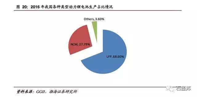 從動(dòng)力電池的裝配車型來看,目前三元電池和磷酸鐵鋰電池是動(dòng)力電池的主流,其中磷酸鐵鋰憑借在客車領(lǐng)域的優(yōu)勢(shì),2016 年的電池出貨量占比達(dá) 70%以上,而三元電池主要在乘用車和物流車裝配,2016 年的裝配占比 20%左右。