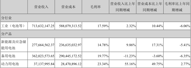 動(dòng)力用電池營業(yè)收入和營業(yè)成本分別同比增長55.16%、49.75%,主要是公司積極拓展低速電動(dòng)車、電動(dòng)叉車等市場領(lǐng)域,銷售量同比增長所致。其他業(yè)務(wù)營業(yè)收入和營業(yè)成本分別同比增長183.56%、210.93%,主要是系統(tǒng)集成項(xiàng)目等非電池銷售新增所致。