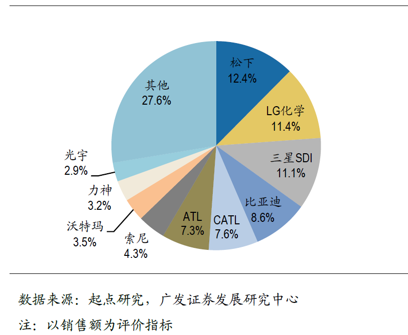 中國儲能網(wǎng)訊:日前從廣發(fā)證券股份有限公司發(fā)布的研究報告獲悉:在全球十大鋰電池企業(yè)中,日本有兩家,韓國有兩家,剩下全部是中國企業(yè),其中比亞迪是中國的龍頭。根據(jù)起點研究統(tǒng)計,日本的松下和索尼占了全球16.7%的銷售額,韓國的LG化學和三星SDI占了22.5%,其余的絕大多數(shù)由中國生產(chǎn)。