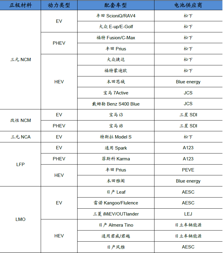 2016年全球新能源汽車主要車型技術(shù)路線及電芯供應商