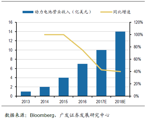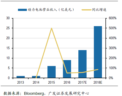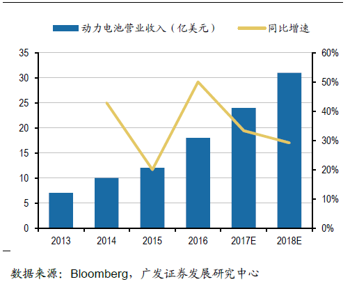 LG化學動力電池業(yè)務營業(yè)收入變化情況