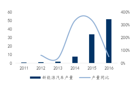 貝瑞特的前十大客戶中,給予貢獻(xiàn)比最大的客戶為“寧德時代”。而寧德時代的下游主要是新能源汽車領(lǐng)域,新能源汽車領(lǐng)域受到雙積分的政策利好,有望迎來需求的增長進(jìn)而推動鋰電材料的增長。據(jù)公開資料了解到,2016年產(chǎn)銷量為51.7萬量與50.7萬量,同比增長51.7%和53%。