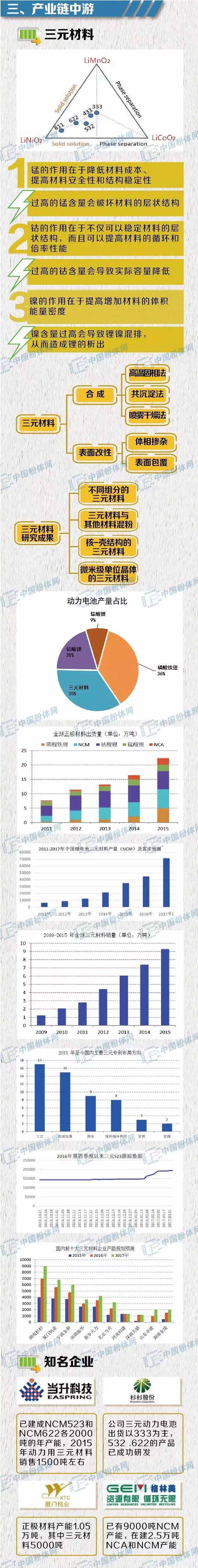中國儲(chǔ)能網(wǎng)訊:鋰離子電池是20世紀(jì)90年代迅速發(fā)展起來的新一代二次電池。廣泛用于小型便攜式電子通訊產(chǎn)品和交通工具。電池材料分為正極材料、負(fù)極材料、隔膜、電解液等。正極材料是制造鋰離子電池的關(guān)鍵材料之一,占據(jù)電池成本的25%以上,其性能直接影響了點(diǎn)吃的各項(xiàng)性能指標(biāo),在鋰離子電池中占據(jù)核心地位。本文主要介紹了三元材料產(chǎn)業(yè)鏈。