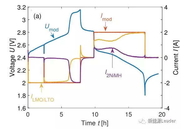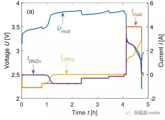 Alexander U. Schmid選取了LiFePO4和Li4Ti5O12材料作為實(shí)驗(yàn)對(duì)象,原因是這兩種材料對(duì)過(guò)充都具有一定的耐受能力,并且在完全脫鋰后電壓會(huì)快速上升,此時(shí)NiMH和Ni-Zn電池承擔(dān)起電流Bypass的作用,多余的電流會(huì)流入到NiMH和Ni-Zn電池之中,從而避免鋰離子電池發(fā)生過(guò)充。
