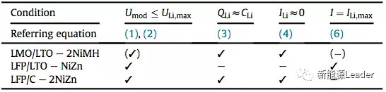 下表是對(duì)幾種電池與NiZN、NiMH電池并聯(lián)時(shí)的效果的總結(jié),從第一列可以看到幾種并聯(lián)方式都能夠使的電池組的最大電壓小于鋰離子電池的最大限制電壓,避免鋰離子電池發(fā)生過(guò)充。從第二列可以看到,除了LFP/LTO-NiZn電池不能充分利用鋰離子電池容量外,其他的兩種并聯(lián)方式都能夠充分的利用鋰離子電池的容量,因此也能夠?qū)崿F(xiàn)對(duì)電池組的均衡(第三列)。從第四列可以看到,受到并聯(lián)的NiZn、NiMH電池的影響,電池組的最大放電電流要小于鋰離子電池的最大電流,因此在實(shí)際使用中需要選用高功率型的NiZn、NiMH電池,以保證電池組的性能不降低。