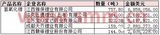表三:8月氫氧化鋰進口量值TOP5企業(yè)(來源:海關信息網(wǎng),SMM)